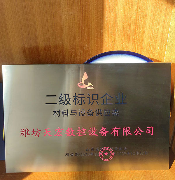 恭賀天宏數(shù)控榮獲山東標(biāo)識行業(yè)-二級標(biāo)識企業(yè)榮譽(yù)